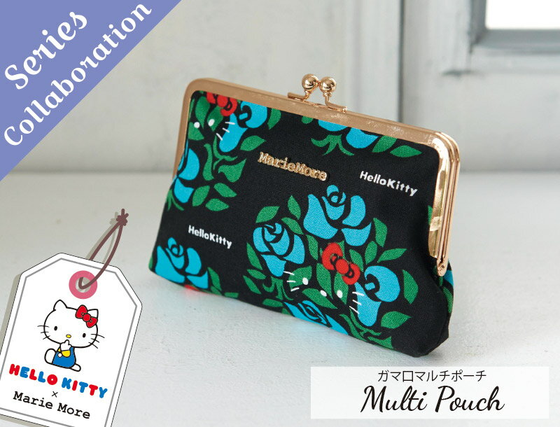 【 メール便 送料無料 】 【 あす楽 可】 キティちゃん 大人 かわいい がま口 マルチポーチ marie more メアリーモア 薔薇柄 mm-0044mk-bl